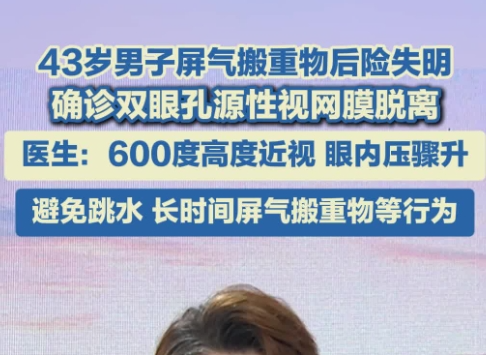 男子近视600度,屏气搬重物后视力暴跌险失明